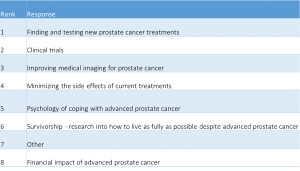The support types you thought were important for people with prostate cancer